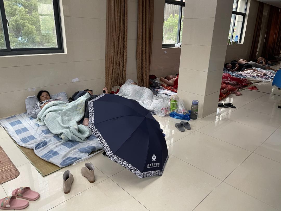 一是立即下達停工命令。在臺風來之前,停止施工現(xiàn)場所有機械設(shè)備運作,并進行安全隱患排查。組織對施工現(xiàn)場臨時設(shè)施和大型設(shè)備進行加固;二是迅速啟動防臺防汛應急預案。成立防臺風分工小組,強化應急24小時值班關(guān)注現(xiàn)場,了解現(xiàn)場情況,為應急預案做好充分的準備工作。三是安排人員轉(zhuǎn)移?,F(xiàn)已組織項目職工/勞務人員等1065人安全分批轉(zhuǎn)移至緊急安置點,實現(xiàn)應撤必撤,并為其提供了礦泉水/方便面等應急物資。