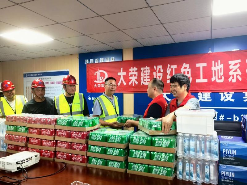 入夏以來(lái),氣溫持續(xù)攀升,酷暑考驗(yàn)著堅(jiān)守在施工一線(xiàn)的建設(shè)者,更牽動(dòng)著大榮集團(tuán)公司領(lǐng)導(dǎo)的心。近期,集團(tuán)黨支部、工會(huì)、生產(chǎn)部門(mén)聯(lián)合開(kāi)展了為期2個(gè)月“高溫送清涼、關(guān)愛(ài)入一線(xiàn)”的慰問(wèn)活動(dòng),為工友們發(fā)放藿香正氣水、風(fēng)油精、西瓜、礦泉水等防暑降溫必備物品,并叮囑項(xiàng)目部要合理安排高溫天氣工作時(shí)間,做好防暑降溫工作。