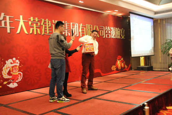當晚,大榮建設(shè)集團有限公司舉行全體員工答謝晚宴。宴會期間,公司高管領(lǐng)導(dǎo)為優(yōu)秀員工頒發(fā)榮譽證書,為員工抽取各種獎項、分發(fā)獎品,整個晚宴在隆重而不失歡樂的氣氛下進行。